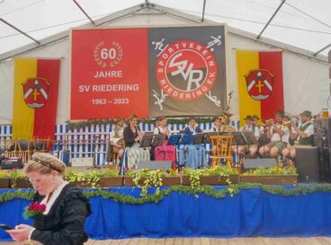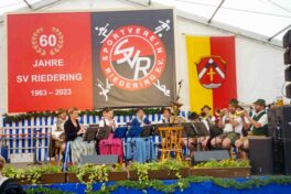Die Optimisten beim Sportverein Riedering bekamen recht, als sie die Wortgottesfeier anlässlich des 60jährigen Vereinsjubiläums trotz drohender und dunkler Wolken auf dem Sportplatz unter freiem Himmel begannen – es blieb bis zum Ende trocken. Die Feier begann Gemeindereferent Tobias Gaiser mit den Worten: „60 Jahre gemeinsames Vereinsleben ist ein Grund zum Feiern, aber auch zum Danken“. Musikalische Gestalter waren Riederinger Musikanten unter der Leitung von Josef Staber.