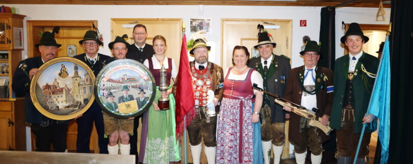 Gewinnerfoto von Hias Krinner – Von links nach rechts Karl Hartmaier, Bundesschützenmeister Harald Schrangl, Michael Danner, Landesschützenmeister BSSB Christian Kühn, Agnes Gistl, Ivo Oberauer Bundesschützenkönig, IKH Herzogin Helene in Bayern, Landeshauptmann Martin Haberfellner, Franz Wietzorek, Kilian Fichtl