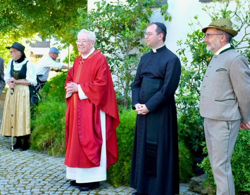 In seiner Predigt blickte Pfarrer Hartl auf seinen Lebensweg zurück und dankte allen, die ihn auf dem Weg zum „Diener Gottes“ begleitet und bestärkt hatten. Besonders würdigte er neben vielen prägenden Begegnungen während Ausbildung und Studium die „einfache christliche Erziehung“ in seinem Elternhaus in Bad Endorf sowie die über 60-jährige Wegbegleitung seiner Haushälterin Maria Seitz.
