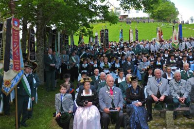 Bruder Franz vom Kloster Maria Eck zeigte sich erfreut, dass sich auch im Jubiläumsjahr „100 Jahre Patrona Bavaria“ wieder so viele Trachtler auf den Weg gemacht, und ihre Bitten, aber auch ihren Dank zur Gottesmutter Maria nach Maria Eck getragen hatten. Gauvorstand Peter Eicher konnte neben dem Ehrenvorsitzenden des Bayerischen Trachtenverbandes Otto Dufter und seiner Frau Hilde auch Vertreter aus dem Chiemgau Alpenverband und dem Bayerischen Inngau, sowie zahlreiche Gau-Ehrenmitglieder, die Bezirksräte Annemarie Funke und Georg Wetzelsberger, den Berchtesgadener Landrat Georg Grabner, viele Bürgermeister aus den umliegenden Gemeinden und Prof. Dr. Franz Christoph Zeitler begrüßen.
