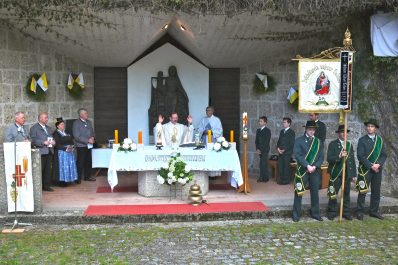 Pfarrer Ernst Kögler aus Bad Feilnbach erinnerte die Trachtler in seiner engagierten Predigt an die Chiemgauer Bauern, die vor über zweihundert Jahren für ihren Glauben und ihre Heimat gekämpft und den Abriss der Wallfahrtskirche Maria Eck verhindert hatten. Mit dem Kernsatz des Evangeliums: „Gebt dem Kaiser was des Kaisers ist – und Gott was Gottes ist“ rief er die Gottesdienstbesucher auf, gemeinsam für Glauben und Heimat einzutreten, selber in der Gesellschaft aktiv zu werden, und die Politik an die vor Jahrhunderten mühsam erkämpfte Trennung von Staat und Kirche zu erinnern. Musikalisch umrahmt wurde der festliche Wallfahrtsgottesdienst bestens von der Musikkapelle Nußdorf/Chiemgau, die auch anschließend im Klosterbiergarten für Unterhaltung sorgte.