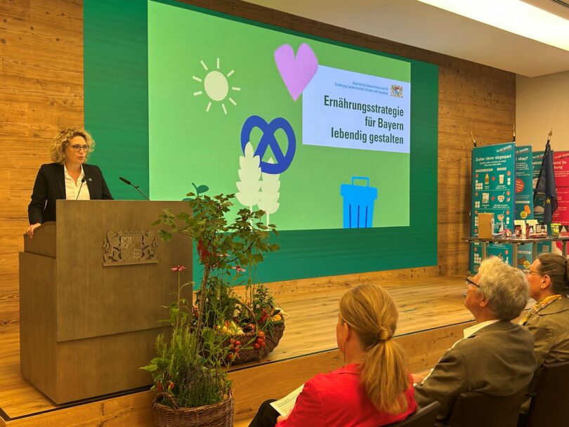Bericht: Bayerisches Landwirtschaftsministerium / Foto: ckö/StMELF – Bild zeigt Abteilungsleiterin Alexandra Schenk, die die Staatsministerin im Rahmen des Fachsymposiums zu den 7. Bayerischen Ernährungstagen vertreten hat, während ihres Eröffnungsstatements im Veranstaltungssaal des Landwirtschaftsministeriums.