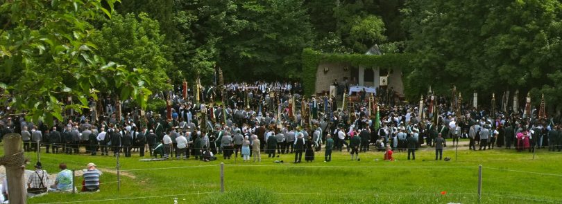 Aufgrund der aktuellen Pandemie-Bestimmungen musste natürlich auch die für Sonntag geplante 70. Trachtenwallfahrt des Gauverbandes I nach Maria Eck abgesagt werden. Um den vielen Trachtlern und Freunden, bei denen die Wallfahrt seit Jahrzehnten zum festen Jahresablauf gehört, eine Möglichkeit zu schaffen diesen Fixtermin trotzdem mit erleben zu können, wurde kürzlich eine Aufzeichnung am Freialtar in Maria Eck erstellt. Dieser Gottesdienst wird nun am kommenden Sonntag den 17. Mai um 10.00 Uhr im Internet gesendet werden. Der Zugang wird auf der Internetseite des Gauverbandes I unter der Rubrik „Wallfahrtsgottesdienst Maria Eck“ angezeigt und braucht nur angeklickt zu werden. Den Gottesdienst zelebriert der Guardian des Klosters Maria Eck Bruder Franz Maria. Er wird dabei von Fürbitten-Leser Helmuth Wegscheider, dem Ruhpoldinger Organisten Markus Spickenreuter und einem Solotrompeter unterstützt und während der Wandlung und zum Abschluss der Messe sind auch die Salven der Berchtesgadener Weihnachtsschützen zu hören. Die Begrüßung und die Ansprache zum Totengedenken hält Gauvorstand Peter Eicher.
