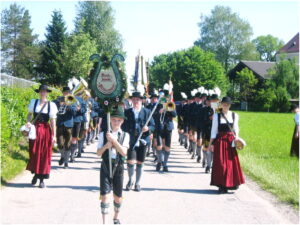 „Wia de Zeit vergeht“ – so lautet ein 175 Seiten starkes Buch über die Musikkapelle Wildenwart. Erstellt wurde das Buch im Rahmen einer Diplomarbeit im Jahr 1990 von Gabriele Pfaffenzeller, der Enkelin des Kapellen-Gründers Albert Pfaffenzeller. Seither sind wieder 35 Jahre vergangen und so kann die Musikkapelle Wildenwart heuer auf ihr 70jähriges Bestehen zurückschauen. Gefeiert wird das Jubiläum von Freitag, 16. Mai bis Sonntag, 18. Mai auf dem Braun-Hof in Stupfa, Gemeinde Frasdorf.