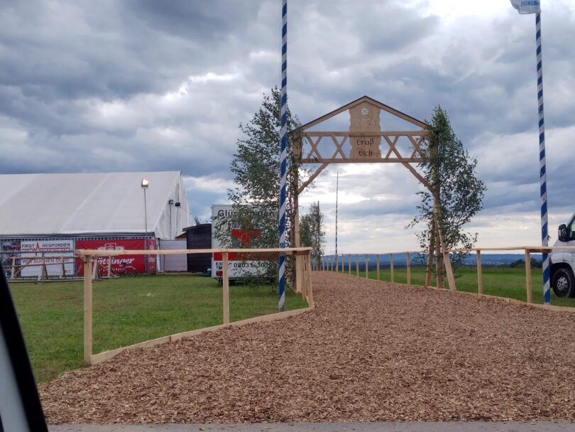Nach dem Zeltaufbau haben die Feierlichkeiten bei der Jungbauernschaft in Neukirchen-Riedering bereits begonnen.