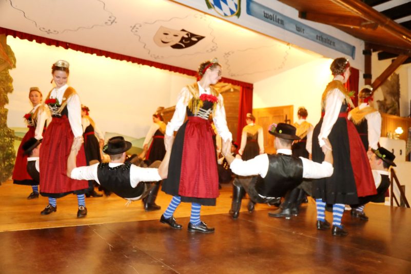 Die weiteren Mitwirkenden Gruppen waren der Haarbacher Dreig’sang und die Bachofamusi. Vorausgegangen war ein würdiger Gedenk- und Dankgottesdienst, zum 75-jährigen Vereinsbestehe, dabei gedachte man der verstorbenen Vereinsmitgliedern, der vom Pfarrer Tobias Rother in würdiger Weise zelebriert wurde. Der Trachtlervorsitzende Wast Obermeier konnte eingangs zum Heimatabend viele Gäste und Ehrengäste Landrat Peter Dreier, die drei Bürgermeister der Gemeinde Neufraunhofen, Bernhard Gerauer, Peter Hauer und Anton Maier und nicht zuletzt Hinterskirchener Trachtenfamilie im vollbesetzten Ramplwirtsaal begrüßen. Obermeier Umriss in kurzen Zügen den Anwesenden die 75-jährige Vereinsgeschichte des Hinterskirchener Trachtenvereins. Der Landrat Peter Dreier überbrachte die besten Grüße des Landkreises Landshut würdigte die große Bedeutung der Aktivitäten des Heimat- und Volkstrachten-Erhaltungsverein Hinterskirchen für die Gesellschaft, Tradition und Brauchtum sowie für 75 Jahre Treue zur Tracht. Der Volkstrachtenverein Hinterskirchen feiert sein 75-jähriges Vereinsbestehen. In all diesen Jahren seines Bestehens, hat der Trachtenverein eindrucksvoll bewiesen, dass es möglich ist, die Trachten zu bewahren, das Brauchtum zu pflegen und die Liebe zur Heimat zu erhalten. Der Hinterskirchener Trachtenverein mit seiner hervorragenden Jugendarbeit, seinen gelungenen Veranstaltungen, wie Volkstanzaufführungen, Heimatabende, Goaßlschnalzer, Theateraufführungen ist aus dem gesellschaftlichen und kulturellen Leben in unserem Landkreis und der Gemeinde Neufraunhofen nicht wegzudenken. Mit großem Stolz kann man laufend feststellen, welch hohes Ansehen unser Trachtenverein weit über die Gemeinde und Landkreisgrenze hinaus hat. Dafür gebührt ihm Dank und Anerkennung. Möglich war und ist das nur, durch das 75 Jahre lange Wirken vieler engagierter Vereinsmitglieder. Es ist eine große Freude zu sehen, mit welcher Begeisterung und berechtigtem Stolz so viele Trachtlerinnen und Trachtler in jeder Altersgruppe so aktiv sind. All denen, die sich uneigennützig im Verein bisher so großartig engagiert haben, voran seinen Vorständen Wast Obermeier und Gerhard Hofstetter sowie allen Mitgliedern, Freunden und Gönnern gilt voller Bewunderung ein herzliches „Vergelt´s Gott“. Den engagierten Mitgliedern in den Heimat- und Trachtenvereinen ist es zu verdanken, dass nicht nur ein Stück unserer Kultur lebendig bleibt, sondern über die Vereine auch viele Kinder und Jugendliche Zugang zu ihrer Herkunft und Identität, nach dem bewährten Trachtlerwahlspruch: “Treu der Sitt’, treu der Tracht’ und treu der Heimat”. Im Anschluss folgte der kurzweilige Heimatabend mit Instrumentalstück’ln, Gesangs- und verschiedenen Tanzdarbietungen. Bis in den Abend hinein reihum spuit, musiziert, boarisch gsunga, tanzt und great. Der Hinterskirchener Trachtenverein bewies erneut ein glückliches Händchen. Sowohl in der Auswahl der Sänger und Gruppen. Ganz nach dem Geschmack der vielen Zuhörer war die boarische Volksmusik, die von den Musikgruppen geboten wurde.
