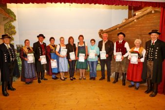 Alle Geehrten für langjährige Vereinszugehörigkeit beim Heimat- und Volkstrachtenerhaltungsverein Hinterskirchen geehrt und ausgezeichnet