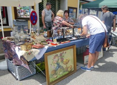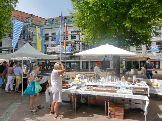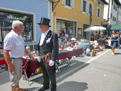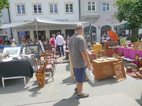 Bereits zum achten Male fand in Prien ein Antikmarkt statt. Die heurige Veranstaltung aus der Reihe “Schöne Märkte” war wieder reichlich von Fieranten und Anbietern besucht, nach Veranstalter-Angaben waren die Ausstellungsflächen wieder einmal ausgebucht. Als bereichernde Einlage für die Marktbesucher zog zur Mittagszeit der Festzug anlässlich des Veteranen-Bezirksfestes mit Blasmusik und mit über 1.500 Teilnehmern farbenprächtig durch Prien. Der nächste Markt in der Marktgemeinde Prien ist am Sonntag, 15. Juli der Sommer- oder Jakobimarkt.