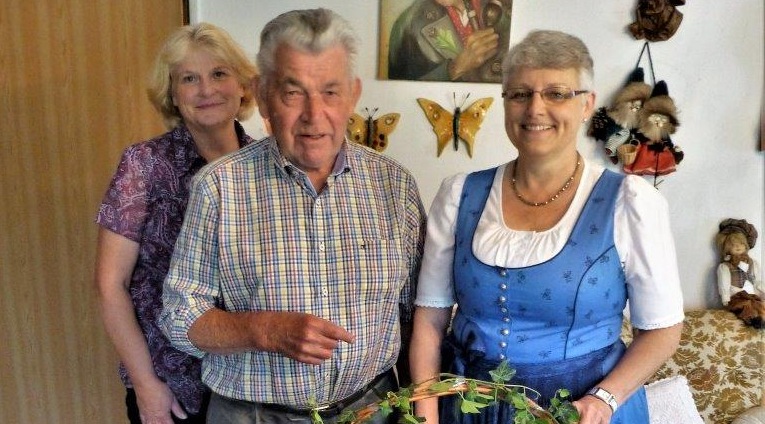Schöne Geburtstagsfeier auf dem Samerberg als Rudi Richter 80 wurde: Der Jubilar aus Grainbach wurde im Juni 1937 in Römerstadt im Sudetenland geboren. Er war der Zweite von vier Söhnen. Sein Vater musste in den Krieg ziehen und ist im Feld gefallen. Im Jahr 1944 flüchtete die Mutter mit ihren vier Söhnen. Sie kamen nach München in ein Durchgangslager, von wo aus sie nach einigen Tagen Sachrang zugeteilt wurden. Sie bewohnten dort viele Jahre gemeinsam ein Zimmer. Die Mutter bemühte sich um Lehrstellen für ihre Söhne. Rudi Richter durfte beim Lechner in Achenmühle das Müllnerhandwerk erlernen. Täglich fuhr er mit dem Fahrrad von Sachrang nach Achenmühle. Mitte der 50ger Jahre zog Herr Richter mit seiner Mutter und seinen Brüdern nach Bichl auf den Samerberg, wo sie eine neue Heimat gefunden haben. Nach kurzer Zeit erlitt die Familie einen schweren Schicksalsschlag. Sein jüngerer Bruder starb bei einem Fahrradunfall auf dem Weg nach Achenmühle. Sein beruflicher Werdegang führte ihn zur Firma Schauer, Tiefbau, wo er einige Jahre im Straßenbau arbeitete. Betriebsbedingt wechselte Rudi Richter ins Zementwerk nach Rohrdorf, wo er vor knapp 20 Jahren nach längerer Krankheit in den Ruhestand ging. 1978 heiratete er seine Frau Martina, die ihm auch in den schweren Zeiten seiner Krankheit stets eine Hilfe war und ist. Im Jahr 1998 verstarb seine Mutter Juliane. Seine große Leidenschaft gehörte dem Hufeisenwerfen, wo er viele Stunden seiner Freizeit genoss. Ebenso waren Stammtischbesuche beim „Hamper“ immer eine große Freude. Seine gesellige, aufgeschlossene Art zeigte Rudi Richter bei der kleinen Feier an seinem Geburtstag. Die Mitbewohnerinnen mit ihren fünf Kindern gratulierten dem Jubilar von Herzen. An diesem Ehrentag überbrachten Katharina Hartmann für die Pfarrgemeinde und Annemarie Braun, 3. Bürgermeisterin, für die Gemeinde die herzlichsten Glückwünsche. Die Feier mit Familie und Freunden fand im Gasthof Maurer statt.