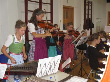 Die „Früchte” dieser schönen Musiziertage durften die Eltern und Angehörigen der Kinder dann schließlich bei einem großen „Abschlusskonzert” am Sonntag hören. Alle Kinder gaben auf den verschiedensten Intrumenten ihr Bestes, sie sangen, plattelten und trugen Gedichte zum Schmunzeln vor. Das Publikum im vollen Saal dankte es mit lang anhaltendem Beifall.