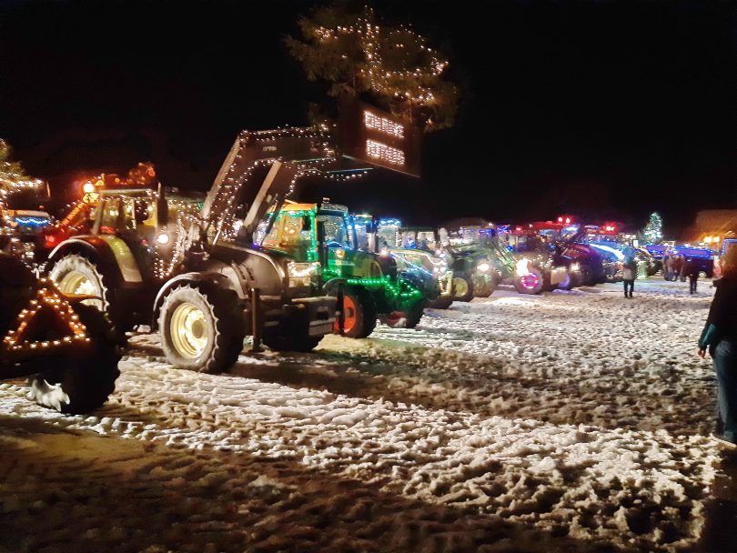 Dazu schmückten insgesamt 94 Landwirte ihre Schlepper mit Christbäumen, Leuchtfiguren und Lichterketten. Sie machten sich auf den Weg durch die Dörfer Eggstätt, Bad Endorf, Rimsting, Prien am Chiemsee, Breitbrunn, Gstadt und Gollenshausen um den Menschen und vor allem den Kindern eine Freude zu bereiten. Diese konnten durch die Fenster, vom Garten aus oder weit verteilt an den Straßenrändern die wunderschön geschmückten Gefährte bestaunen.