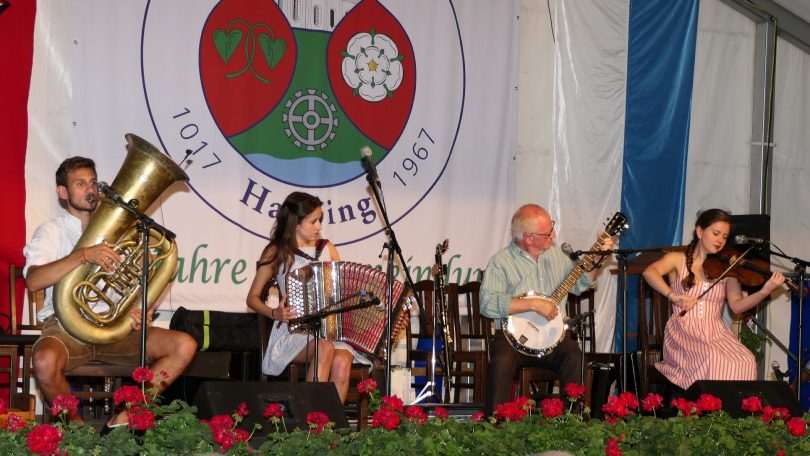 Am zweiten Festtag des Bürgervereins Happing anlässlich der 1000jahresfeier und 50 Jahre Eingemeindung zur Stadt Rosenheim, standen Hans Well & Wellpappen, sowie Luise Kinseher auf dem Abendprogramm. Da Luise Kinseher leider Ihren Auftritt wegen eines privaten Problemes kurzfristig absagen musste, übernahmen Hans Well & Wellpappen namentlich Jonas, Tabea und Sarah den Abend mit lustigen Satiren, schon eher mit bissigem Charakter und schmissigen Liedern instrumental gespielt. Im Anschluss der Darbietungren lud die Bar noch zum geselligen Ausklang ein. Mit lobenden Worten, gesprochen von Marisa Steegmüller – Phyr vom Flötzinger Bräu, wurde noch ein Gruppenfoto mit den Bedienungen gemacht.