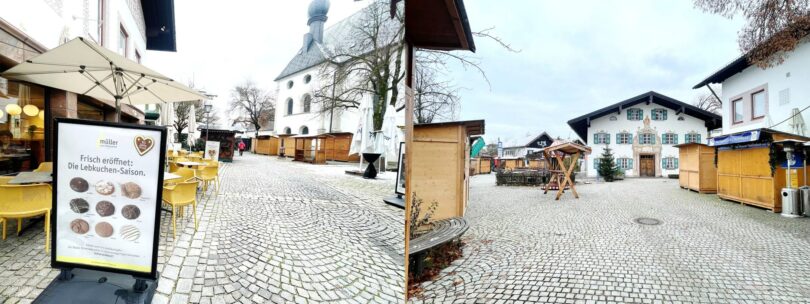 Fotos: Hötzelsperger – noch sind die bereits aufgebauten Stände nicht offen – die Eröffnung des Priener Christkindlmarktes ist am Freitag, 28. November ab 18 Uhr.