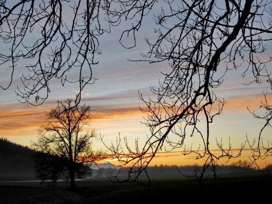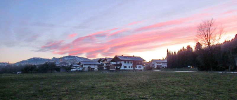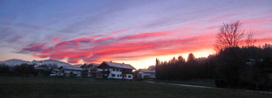 Zuweilen golden-gelb und dann wieder feuerrot – so zeigte sich der zweite Tag des Neuen Jahres zum Tagesausklang – davon geben diese aktuellen Bilder aus der Gemeinde Prien mit Blick in Richtung der Ortschaften Stetten und Prutdorf ein farbiges Zeugnis.