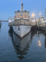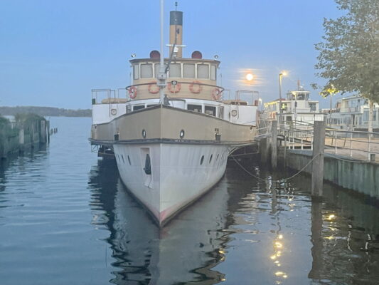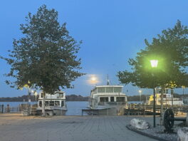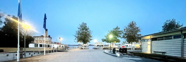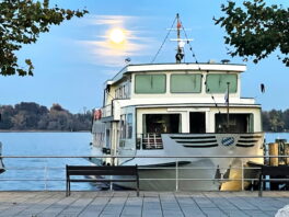 Feierabendstimmung herrscht im Priener Hafen der Chiemsee-Schifffahrt gewöhnlich, wenn die Sonne untergegangen und der Mond aufgegangen ist.