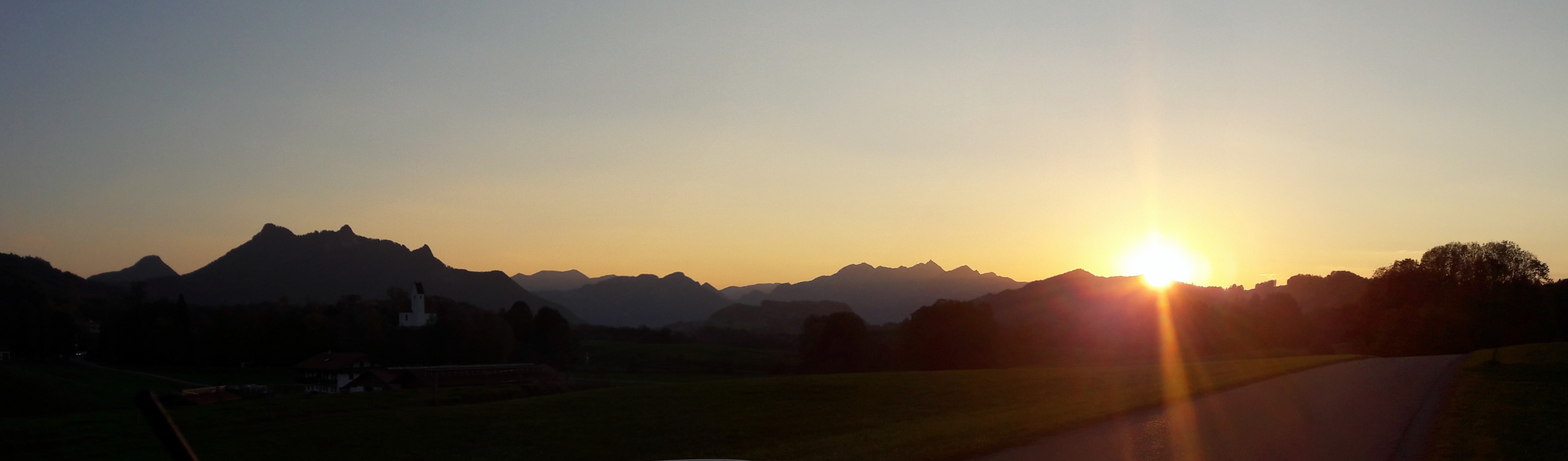Spätsommer ohne Ende und Abendstimmungen, die es in sich haben – so könnte man diese aktuelle Aufnahme deuten, die von Grainbach aus auf das nahe Bergmassiv hinführt.