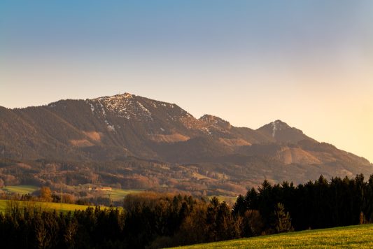 Besondere Stimmungen bei klarer Luft und anhaltend schönem Frühlingswetter zeigen sich in diesen Tagen insbesondere, wenn die Abendsonne mit ihren letzten Strahlen die heimischen Berge beleuchtet oder wenn kurz darauf der Vollmond hinter den Waldbäumen auftaucht – unsere aktuellen Bilder zeigen die Kampenwand und die Hochries sowie einen Vollmond im schönsten Abendlicht.