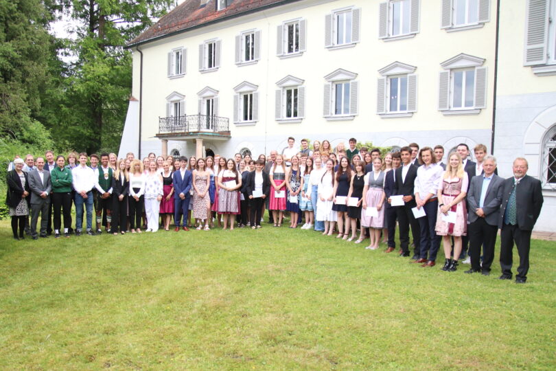 67 Schülerinnen und Schüler haben ihr Abitur an einem der Gymnasien im Landkreis Rosenheim mit einem Notendurchschnitt von 1,5 und besser abgeschlossen. Der stellvertretende Landrat Josef Huber (rechts) ehrte sie bei einem Empfang auf Schloss Hartmannsberg.
