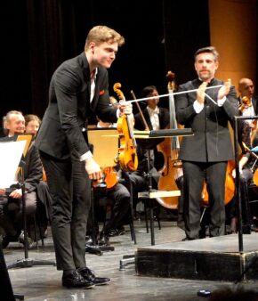 Um es vorwegzunehmen: Wer das Glück hatte, das vierte Abokonzert mit dem Titel „Deep.Summer“ zu erleben, der fühlte sich reich beschenkt und beglückt. Der Theatersaal im Kurgastzentrum bebte mit dem Applaus, der Freude und der Begeisterung der zahlreichen Besucherinnen und Besucher. Alle Möglichkeiten, mit Geräuschen sein Lob zum Ausdruck zu bringen, vermischten sich zu einem Aufwallen von bewunderndem Staunen. Dies galt den Philharmonikern unter ihrem Gastdirigenten Florian Csizmadia nach Ludwig van Beethovens achter Sinfonie ebenso, wie vor allem dem jungen – man darf jetzt getrost sagen „Stargeiger“ – Tassilo Probst, der ablieferte, was die Werbung versprochen hat. Sein Konterfei hing im gesamten Landkreis, und man war gespannt, ob er dem Genüge leisten würde. Seine bisherigen Konzertaktivitäten und Auszeichnungen ließen zwar kaum daran zweifeln. Doch auf der Bühne heißt es „funktionieren“. Und das tat er – mehr als das. Er brillierte, glänzte, spielte wie ein junger Gott, ja, wie man sich Nicolò Paganini selbst vorstellt. Dessen erstes Violinkonzert ließ er gemeinsam mit den Bad Reichenhaller Philharmonikern erstrahlen. Wie die Ouvertüre zu einer Opera buffa geriet die Orchestereinleitung der Philharmoniker, die mit einem Lächeln auf ihren Gesichtern zeigten, wie viel Spaß sie am Musizieren hatten. Die Arien in dieser „Komischen Oper“ sang Tassilo Probst auf seiner Violine von Giovanni Grancino aus Mailand, 1690. Man hörte geradezu das Lachen und Sehnen der Liebenden bei einer stupenden Technik – Probst zeigte in diesem Violinkonzert alles, was auf der Geige möglich ist und dies mit Präzision und Musikalität. Flageolett-Doppelgriffe in rasantem Abwärtsgang und höchste Töne mit einer absoluten Treffsicherheit – nach dem ersten Satz ging es nicht anders: „Da muss man einfach klatschen“, sagte ein Besucher und schloss sich dem Zwischenapplaus an. Tassilo Probst zeigte, was er kann: Mit zwei nicht weniger virtuosen Zugaben – „Il Carnevale di Venezia“, ebenfalls von Nicolò Paganini und Fritz Kreislers „Recitativo und Scherzo Caprice“ – sorgte er ein weiteres Mal für höchste Verblüffung.