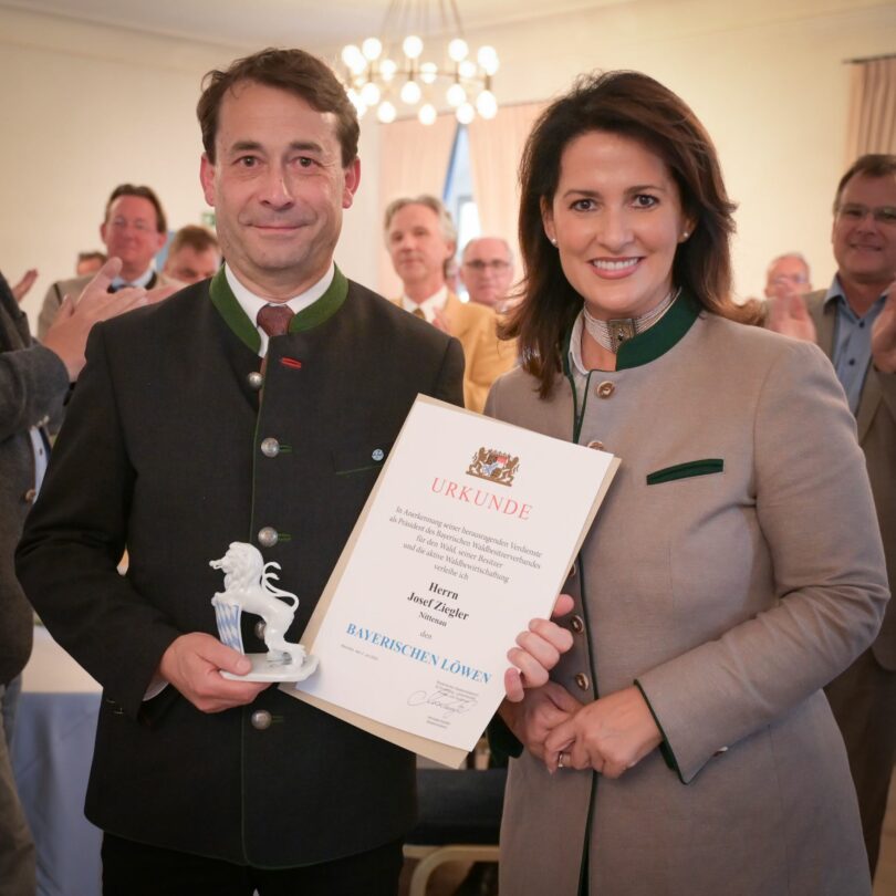 Ehemaliger Präsident des Bayerischen Waldbesitzerverbandes feierlich verabschiedet – Forstministerin Michaela Kaniber ehrt Josef Ziegler mit dem Bayerischen Löwen