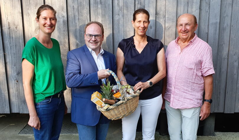 Bericht und Foto: Sicherheitsgemeinschaft Chiemgau – 2. Vorsitzende Irene Biebl-Daiber, 1. Vorsitzender Andreas Friedrich, EPHKin Karin Walter und Schriftführer Peter Fenzl bei der Übergabe des Geschenkkorbes (von links).