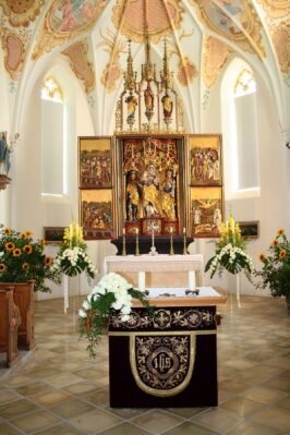 Am letzten Oktobersonntag wurde in der Kirche St. Florian bei Frasdorf der alljährliche Wolfgangsgottesdienst zu Ehren des heiligen Wolfgang, des Nebenpatrons der Kirche, mit Pfarrer Overmeyer gefeiert.