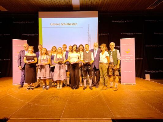 Musikalisch umrahmt wurden die beiden Abschlussfeiern von Pepe Frimmer – selbst Abschlussschüler – am Klavier mit dem Stück „Je te laisserai des mots“ sowie von einigen Neuntklässlern der Wirtschaftsschule. Laura Antretter am Klavier bereicherte mit „Lady Brittany’s Ballad“ die Feier. Beeindruckend war der Auftritt von Sophie Kerbel mit ihrem gefühlvoll vorgetragenen Song „All I Ask“ ebenso wie Philipp Bergerhoff auf der Ziach, der gemeinsam mit Schuhplattlern aus verschiedenen Vereinen den stimmungsvollen Abschluss beider Feiern bildete.
