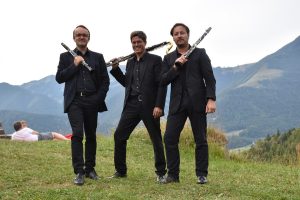 vor dem Hintergrund der Kampenwand auf dem Streichen Von links Florian Georg Mühlberger, Stephan Moosmann, Christof Schwarzenberger