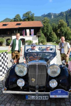 Mehrere Prüfungen hatten die Teilnehmer der ADAC Europa Classic 2023 bei ihrer Rundfahrt durch den Chiemgau zu bestehen: die Sommersonne ließ bei den Besatzungen Sehnsucht nach dem Komfort einer neuzeitlichen Klimaanlage aufkommen und prüfte ihre Durchhaltefähigkeit, dazu kamen noch die diversen Aufenthalte auf dem Weg zwischen Bernau, Inzell, der Roßfeldstaße, Berchtesgaden bis zum Ziel nach Aschau