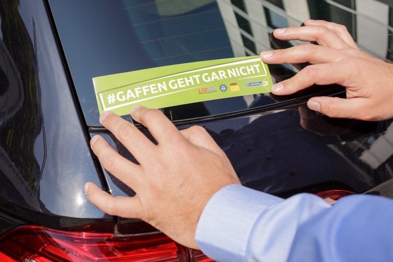 „Mit #Gaffen geht gar nicht können wir mit unseren starken Partnern eine Botschaft platzieren, die uns als ADAC wichtig ist: ein respektvoller, rücksichtsvoller Umgang aller Verkehrsteilnehmer und mobilen Menschen – ganz egal, ob sie zu Fuß, mit dem Fahrrad, dem Auto oder mit öffentlichen Verkehrsmitteln unterwegs sind“, freut sich Kreipl. Der ADAC als Mobilitätsdienstleister und Verbraucherschützer setze hier auf das Motto „Aufklären und überzeugen statt belehren.“ Jetzt hofft er auf viele Menschen, die sich auf den Weg zum ADAC machen und sich dort den Gratis-Aufkleber abholen: „Damit unsere gemeinsame Botschaft draußen auf den Straßen noch sichtbarer wird.“