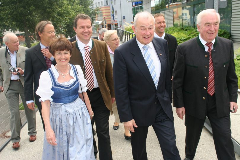 Foto: Hötzelsperger – Adolf Dinglreiter (re.) vor zehn Jahren bei den Weiß-Blauen Tagen in Rosenheim mit dem ehemaligen Bayerischen Ministerpräsidentenn Günter Beckstein