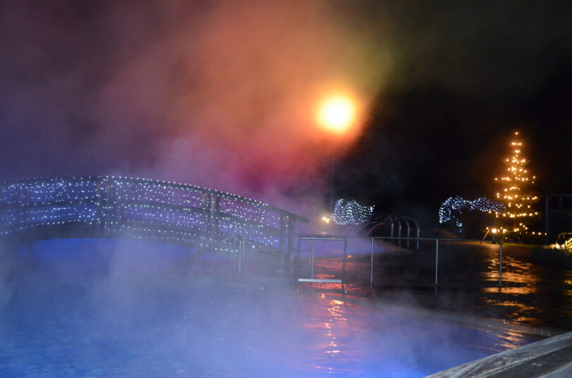 Bericht und Foto: Chiemgau Thermen: Dampfendes Relaxbecken (34 °C)