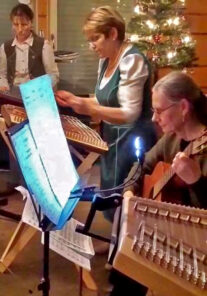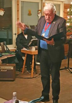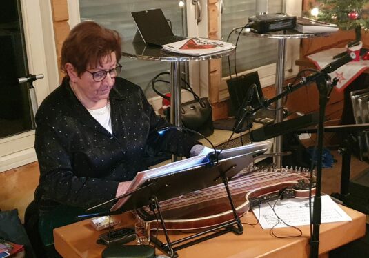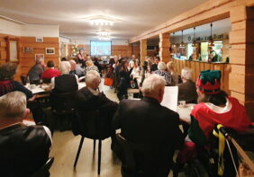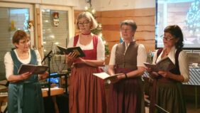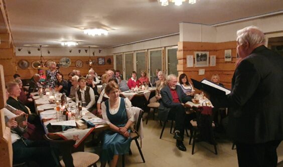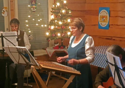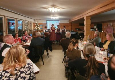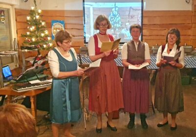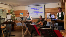 Nach einem Rückblick auf die Aktivitäten des vergangenen Jahres, gemeinsames Singen der traditionellen Weihnachtslieder, begleitet von den Steirer-Musikanten des Vereins, Monika und Felix Lämmel, zusammen mit Waltraud Lehman, an der Zither. Bevor es zum Buffet mit den Gänsekeulen ging, dann noch adventliche Musikbeiträge vom Hackbrett Consort Kleinmachnow, mit Irmgart Mann, Denise Pinta, Ines von Nolting und dem Vorsitzenden des Vereins. Ein Highlight des Abends war der Kleinmachnower Dreigesang, mit Irmgart Mann, Andrea Reinfeld, Johanna Einspanier und Waltraud Kruck. Für den Einsatz des Hüttenteams hinter der Theke, Patricia, Matthias, Detlef und Andreas ein herzliches „Vergelt’s Gott“. Es war eine gelungene bayerische Weihnachtsfeier in der Almhütte der Bayern in Berlin, zur Pflege der bayerischen Traditionen in der Bundeshauptstadt.