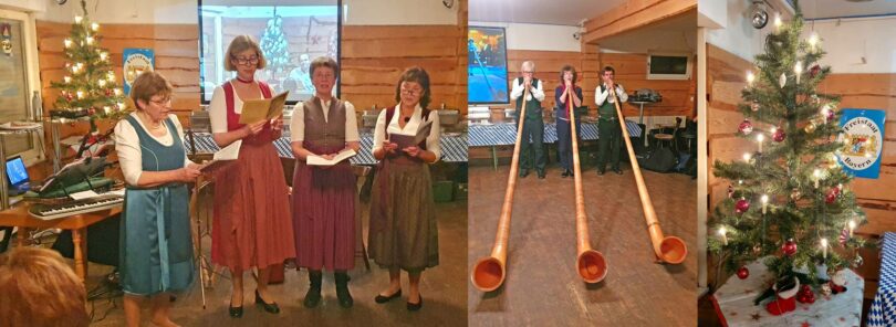 Wie jedes Jahr hat der „Verein der Bayern in Berlin“ zu seiner traditionellen Weihnachtsfeier in seine Almhütte eingeladen. Mit weihnachtlicher Stubenmusik wurde der Abend von Volksmusikern aus Berlin und Brandenburg umrahmt. Nach einleitenden alpinen Klängen vom Alphorntrio des Vereins, mit Ingrid und Peter Noack, begrüßte der Vorsitzende die Gäste auf das Herzlichste, insbesondere die Geistlichen beider Konfessionen, Pfarrvikar Prof. Dr. Kurt Anglet (katholisch) und den evangelischen Theologen, Andreas Penski. Beide sind mit dem Bayernverein eng verbunden und begleiten das ökumenische Miteinander im Verein.