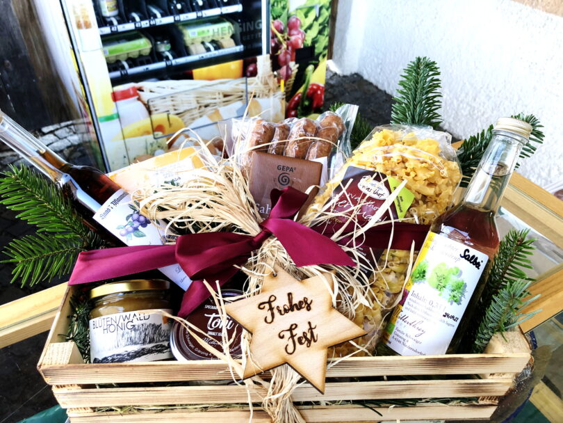 Manchmal sind es die kleinen, feinen Dinge, die ganz besondere Freude machen. Handgemachte Geschenke aus Holz zum Beispiel, liebevoll hergestellte Handarbeiten oder Präsente aus den Wendelstein Werkstätten für Menschen mit Behinderung – eine schöne Auswahl von allem findet sich im Bergbauernladen. Gerne stellt das Verkaufsteam auch Geschenkkörbe ganz nach Kundenwunsch zusammen. Ob Prientaler Schmankerl oder Tiroler Spezialitäten, Edelbrände oder Liköre der Familie Obermüller aus Leiten, selbst gemachte Marmeladen oder ein erlesener Essig, die Auswahl ist groß. Oder man verschenkt einfach einen Genuss-Gutschein und unterstützt auch damit das wichtige Anliegen der Bergbauern, die hiesige, kleinstrukturierte Landwirtschaft zu sichern.