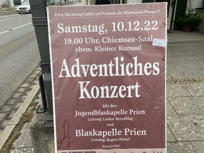 Zu einem adventlichen Blasmusikaebend laden die Prien Marketing GmbH und der Förderverein zugunsen der Priener Blaskapelle am Samstag, 10. Dezember in den Chiemsee-Saal ein. Ab 19 Uhr gibt es bei freiem Eintritt Auftritt der Jugendblaskapelle Prien, der Erwachsenen-Kapelle und Pausen-Glühwein.