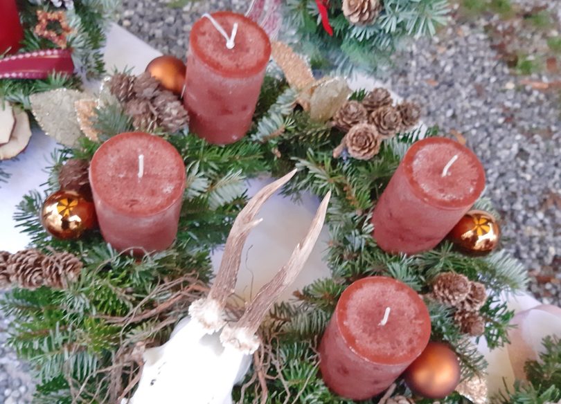 Ein adventliches Angebot gibt es dieses Wochenende immer nchmittags im Freien vor dem Hofladen am Wastlhof in Prien – Elperting für die vorbeikommenden Kunden. Der Weihnachtsmarkt Achenmühle e.V. und die Chiemgauer Ukrainehilfe bieten Kränze und Adventsdeko zum Verkauf an.