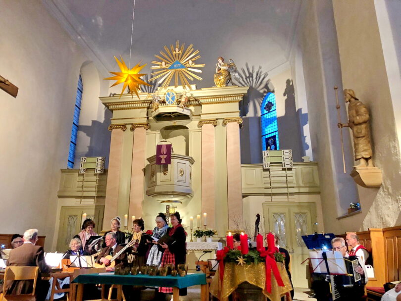 Viele Musiker waren der Einladung gefolgt: die Stubenmusik der Bayreuther Trachtler, ebenso wie die Gesangsgruppe aus Bayreuth. Die Zechgemeinschaft reist extra aus Neukenroth an, um die Zuschauer mit ihrem Gesang zu erfreuen. Aus Weißenstadt nahmen die Seesaiten und das Glockenspiel des Trachtenvereins Almrausch teil. Vor einer gut gefüllten Kirche spielten und sangen die Musiker eineinhalb Stunden weihnachtliche Weisen, teils in Mundart, teils in Hochdeutsch vorgetragen. Jede der Gruppe verzauberte auf ihre Weise die zahlreichen Zuhörer. Wie im Flug war die Zeit um und jeder Besucher nahm genau das mit nach Hause, nach dem sich jeder sehnt: die Freude auf das Kommen des Herrn, auf den wir in der Adventszeit warten.