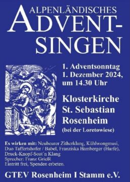Am diesjährigen 1. Advent lädt der Trachtenverein Rosenheim 1 „Stamm“ zum 56. Mal zum Alpenländischen Adventsingen ein.