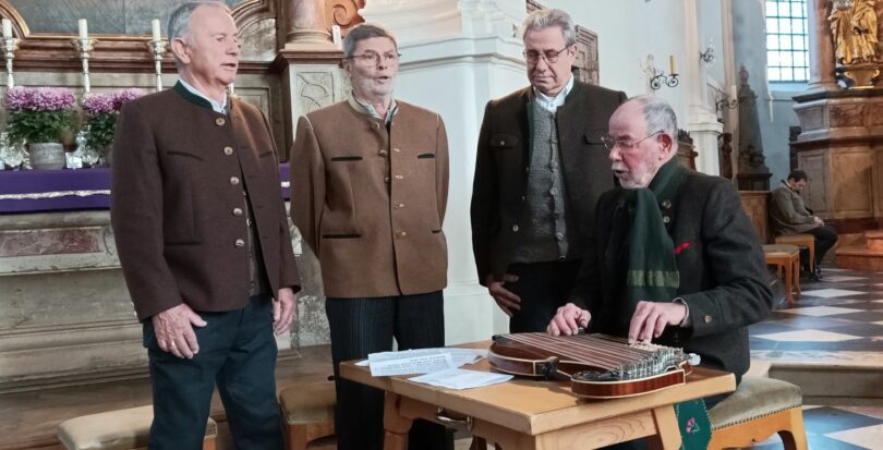 „Communio“, so lautete der Titel des ersten Bläserstücks der Moosbach Bläser, an dem bereits die Bandbreite dieser Veranstaltung vom „hoffenden Advent“ bis zur „beseelten Weihnacht“ erfahrbar wurde. Vom Orgelchor herab erklang sodann unter der Leitung von Chorregent Prankl vielstimmig und kraftvoll das auf der Herreninsel im Chiemsee entstandene Adventslied „Tauet Himmel den Gerechten, stimmlich abgewogen und bestens intoniert von der„Capella Vocale Prien“. Eingebettet in berührende, zeitgemäße Texte, die immer auch den Blick auf einschlägige biblische Aussagen dazu lenkten, sang der hier bestens bekannte, jedoch in der Zusammensetzung zwischenzeitlich leicht veränderte Kolbermoorer Mannergsang, begleitet von Peter Meier auf der Zither, seine Lieder von den Propheten des Alten Testaments, der Verkündigung des Engels Gabriel und der Herbergssuche von Maria und Joseph. Den weiblichen Gegenpart bildeten diesmal die Sunnaukirchner Sängerinnen aus der Bruckmühler Gegend, hierorts noch weniger bekannt, im Stile der legendären Roaner Sängerinnen. Schlicht und bewegend z.B. ihr „Sie tragt a harbas Gwandl“, einfühlsam begleitet vom Kirchleitn Ensemble. Ihr innig dargebotenes Schlusslied „Ein große Freud verkünd ich euch“ ließ in Köpfen und Herzen bereits das kommende Weihnachtsfest und dessen Glanz vorausahnen. Fein, unaufdringlich, von der Beherrschung der einzelnen Instrumente brillant und damit Raum und Seelen ausfüllend, präsentierte sich einmal mehr das Kirchleitn Ensemble mit Rudi Ritter als Mittelpunkt. Saitenmusik auf höchstem Niveau von Zither, Gitarre, Harfe und Hackbrett kombiniert mit dem anheimelnden Spiel der Querflöte ließ die Zuhörerinnen und Zuhörer im großen, adventlich geschmückten Kirchenraum ganz still und andächtig werden. Dazu passte es dann auch, dass die Zuhörer, als die Moosbach Bläser unter dem Klang der Kirchenglocken den erhabenen Schlusspunkt unter das harmonische Ganze setzten, auf ausdrücklichen Wunsch des Sprechers , Siegi Götze, sichtlich bewegt, still und ohne Applaus in den noch jungen Samstagabend hinaustraten.