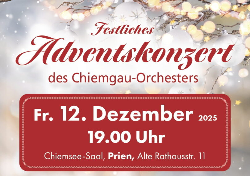 Auch heuer veranstaltet das Chiemgau-Orchester in kleinerer Kammerensemble-Besetzung wieder ein festliches Weihnachtskonzert. Am Abend des 12. Dezember erklingen ab 19 Uhr im Chiemsee-Saal in Prien Kompositionen aus der Barockzeit – eine wohltuende Einstimmung auf die Festtage und eine willkommene Gelegenheit zum Innehalten im hektischen Vorweihnachtstrubel.