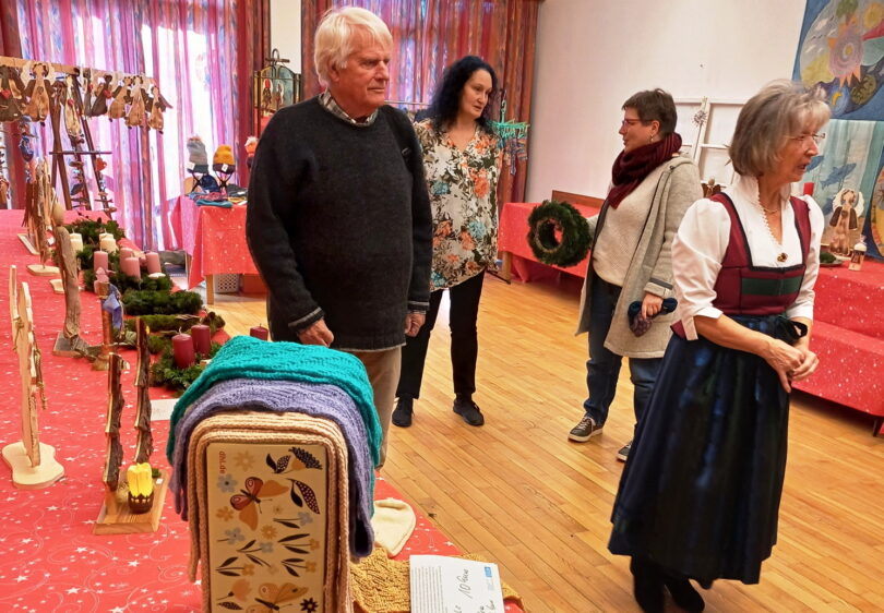 Ein großes Angebot an adventlicher Weihnachtsdekoration, selbst gebastelten Sternen, handgestrickten Socken und Schals oder Advents- und Türkränzen aller Art, boten die fleißigen Helferinnen beim Adventsmarkt der Frauengemeinschaft St. Nikolaus im katholischen Pfarrzentrum von Übersee an.