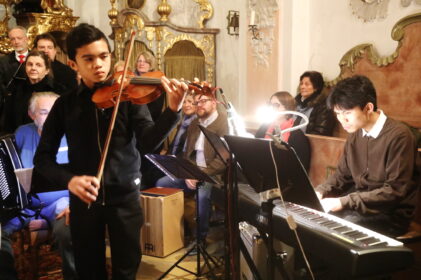 -8668 Die Brüder Johann und Tongson mit Klavier und Geige erfreuten die Kirchenbesucher mit einem adventlichen Instrumentalstückl