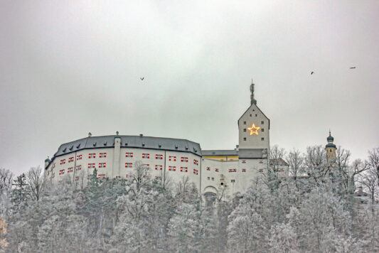 Wenn am Wochenende die erste Kerze am Adventskranz entzündet wird und die Tage stiller werden, kehrt am Freitagabend, 28. November, auch ein vertrautes Leuchten zurück: Der 4,50 Meter große Weihnachtsstern am Schlossturm von Schloss Hohenaschau erstrahlt weithin sichtbar erneut und schenkt dem Priental bis zum Fest der Heiligen Drei Könige am 6. Januar 2026 seinen warmen Glanz.