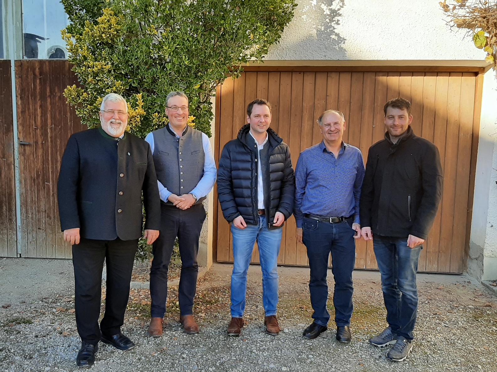 (v.l.n.r.): Bezirksrat Sebastian Friesinger, ELF-Bezirksvorsitzender Michael Hamburger, Bundestagsabgeordneter Dr. Andreas Lenz, Biogasanlagenbetreiber Sepp Lohmaier und Regionalvorsitzender Biogasfachverband Mathias Lohmayer.