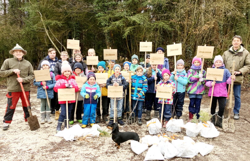 Wer kennt die Libanonzeder oder die Flatterulme, die Elsbeere oder die Flaumeiche? Setzlinge dieser und vieler anderer Baumarten durften Grundschulkinder im Ainringer Klimawald einpflanzen. Und damit auch Spaziergänger die Bäume kennenlernen wissen, hat der Arbeitskreis von Inge Hänsch an der Mittelschule Mitterfelden wunderschöne Namensschilder für die Baumsetzlinge gebastelt. Über diese Zusammenarbeit freuten sich die beteiligten Vereine, der Kulturverein, der Verein für Heimat und Tourismus und die Moosfreunde, besonders.