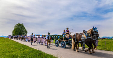 Auch in Aising bei Rosenheim ziert ein neuer Maibaum den Ortstmittelpunkt. Bei schönstem Wetter war das Bringen mit dem Pferdegespann und das Aufstellen ein Genuß-Tag für die vielen Beteiligten und Zuschauer.