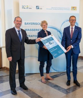 Aiwanger bedankt sich bei den H2.B-Vorständen Prof. Dr. Veronika Grimm und Prof. Dr. Peter Wasserscheid: “Bayern ist froh, Sie beide als Wasserstoffexperten zu haben. Sie sorgen für die große öffentliche Sichtbarkeit des H2.B und für die enge Vernetzung in der wachsenden Wasserstoff-Gemeinschaft in Deutschland.”