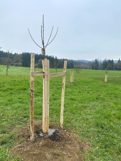 Trotz Regentagen war das Frühjahr bisher viel zu trocken. Besonders für frisch gepflanzte Gehölze stellt ein trockener Boden eine große Herausforderung dar. Die Kreisfachberatung für Gartenkultur und Landespflege rät daher, junge Bäume und Sträucher im Hausgarten, in Streuobstwiesen und im Straßenbegleitgrün besonders in den nächsten Monaten zu unterstützen.