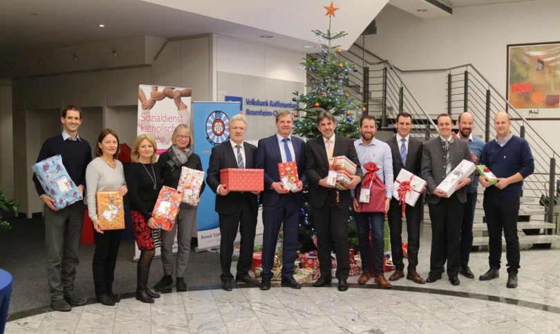 Das Christkind kann mit der Bescherung starten! Die Kunden der Volksbank Raiffeisenbank Rosenheim-Chiemsee eG haben fleißig die Wunschzettel von den Wunschbäumen in acht Geschäftsstellen „gepflückt“ und insgesamt 300 Geschenke abgegeben. Die Weihnachtspackerl stapelten sich unter den Wunschbäumen und werden nun in der Woche vor Heiligabend abgeholt und an die Kinder verteilt. „Wir freuen uns sehr, dass sich unsere Kunden wieder so engagiert an unserer Aktion beteiligt haben“, sagte Martin Klampfleitner, Leiter Öffentlichkeitsarbeit der Volksbank Raiffeisenbank Rosenheim-Chiemsee eG. „Die Wunschzettel waren schnell weg, und viele Kunden haben ihre Geschenke sehr liebevoll eingepackt und mit guten Weihnachtswünschen versehen.“